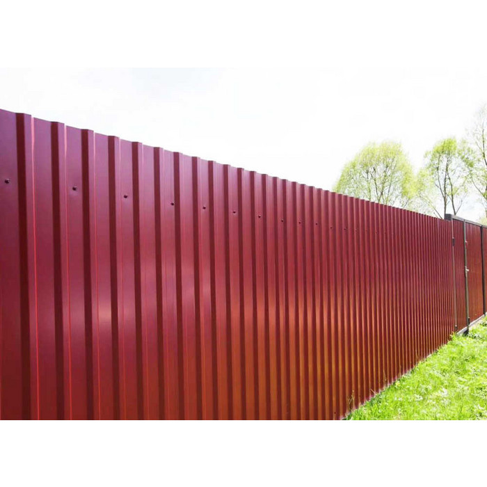 Профилированный лист МП-20x1100-A (ПЭ-01-3005-0,65) — популярный материал в Апшеронске и Краснодарском крае для обустройства забора. Изначально он представляет собой стальной оцинкованный лист с покрытием. Толщина стальной основы с оцинковкой и полимерным покрытием составляет 0.65 мм.После проката на специальном оборудовании сталь принимает волнообразный вид. Несущая способность такого листа гораздо выше плоского.